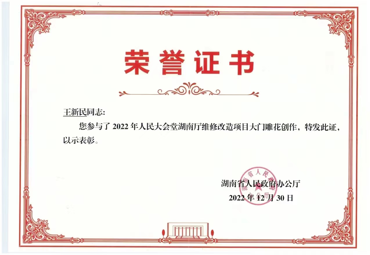 人民大會(huì)堂湖南廳維修改造項(xiàng)目榮譽(yù)表彰,