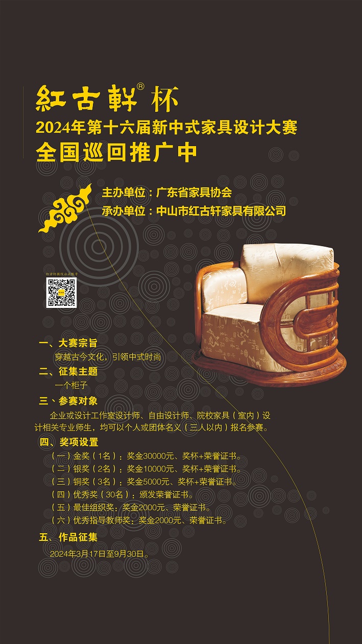 此時(shí)此刻,我們誠(chéng)摯地向全國(guó)各地的設(shè)計(jì)師、設(shè)計(jì)學(xué)子及愛好者發(fā)出邀請(qǐng):無論您身在何處,只要您熱愛設(shè)計(jì)、敢于創(chuàng)新,誠(chéng)邀您加入這場(chǎng)設(shè)計(jì)盛宴,一同探索新中式家具設(shè)計(jì)的無限可能,用設(shè)計(jì)改變生活,用創(chuàng)意點(diǎn)亮未來。紅古軒杯,期待與您一起看見更時(shí)尚的中國(guó)!